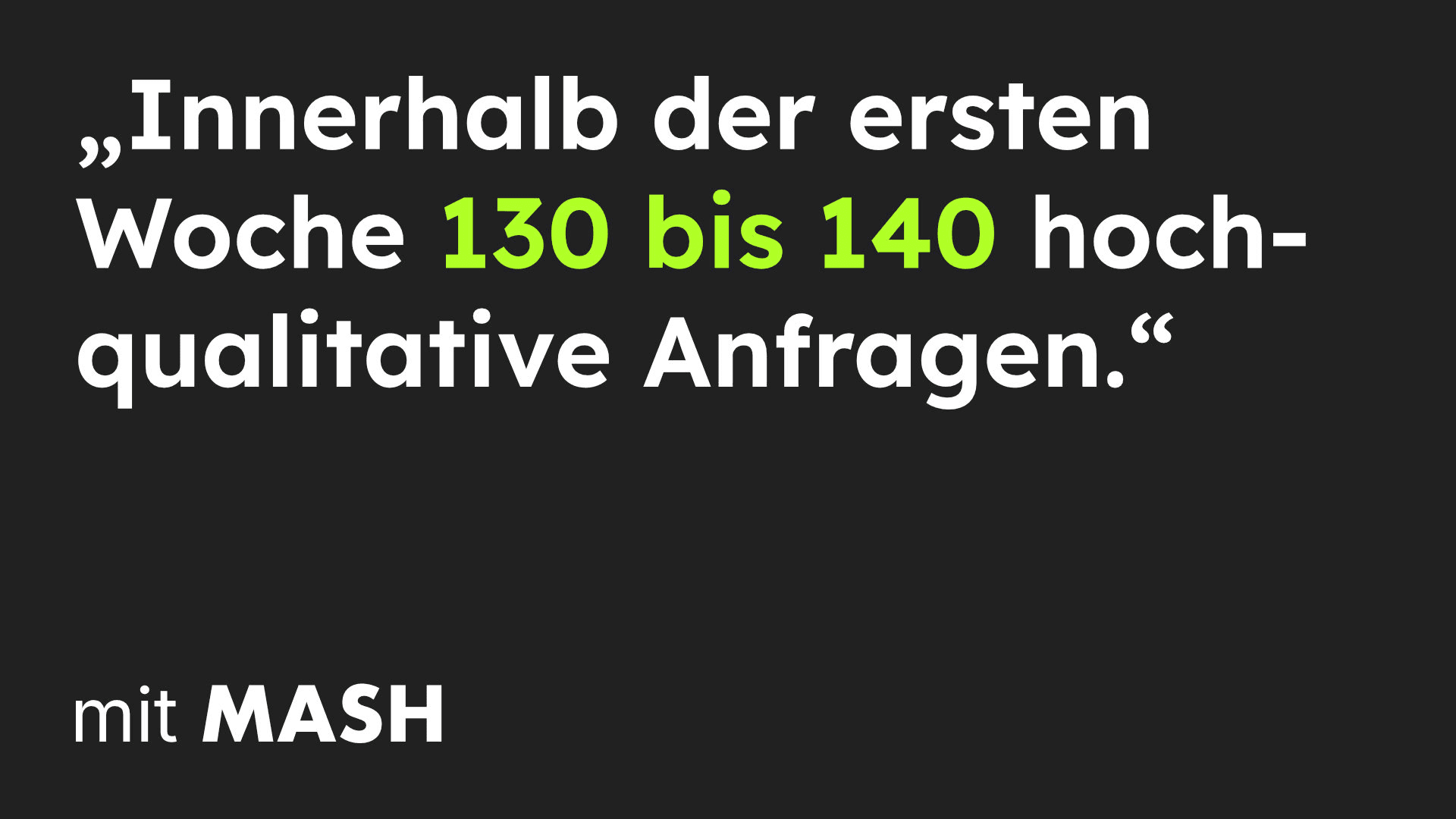 „MASH hat uns nicht nur Leads gebracht, sondern ein System geschaffen, das nachhaltig funktioniert und unsere Vertriebsprozesse massiv beschleunigt hat.